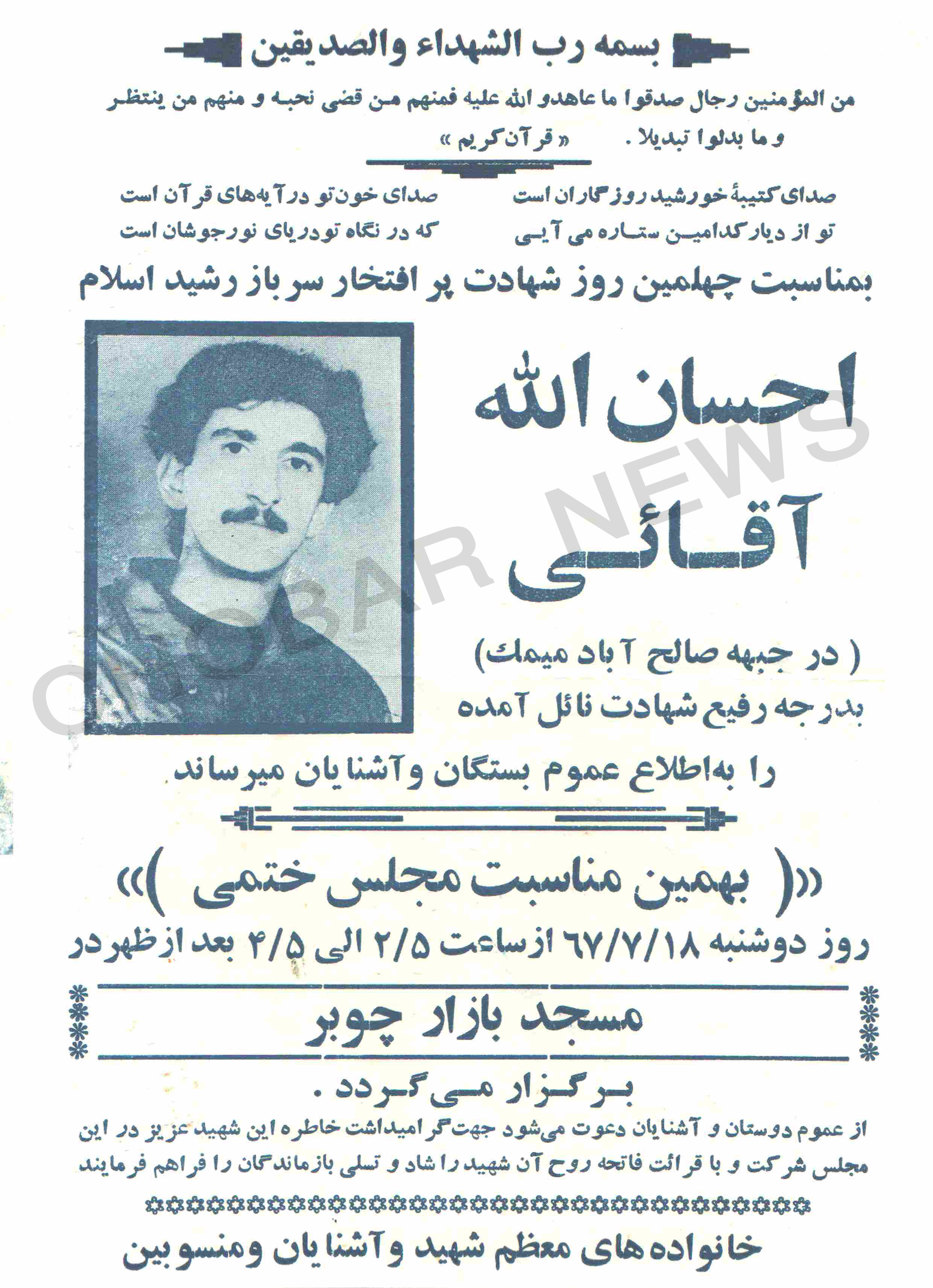 اعلامیه چهلمین روز شهادت شهید آقایی